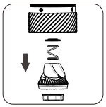 Plaats de onderdelen terug in de juiste volgorde: onderste lagerkap (de bolle kant gericht naar het lager), veer, braam en afstelknop. |