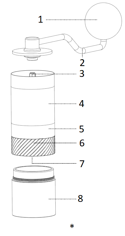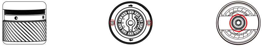 Alle 1Zpresso slijpmachines kunnen zonder gereedschap worden gedemonteerd. Installeer en plaats de slingerhendel goed, blokkeer de rotatie en maak hem los. Draai de instelknop tegen de klok in om hem te verwijderen. |