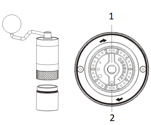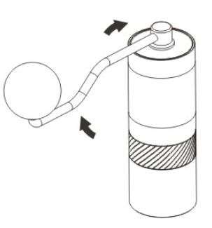 - Maal de koffiebonen met de hendel met de klok mee.