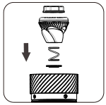De afstelknop, binnenste braam, veer en onderste lagerkap. Kan worden schoongemaakt nadat de instelknop is verwijderd. Verwijder de slingerhendel om de centrale as uit de trechter te halen. |