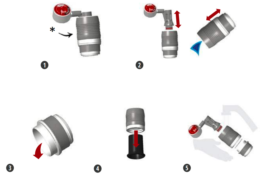- Spoel alle onderdelen van het apparaat af met kraanwater. Laat ze drogen voordat u ze weer in elkaar zet.