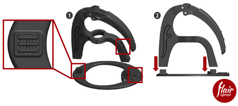 - Het Flair-logo op de basis en het NEO-logo op de paal moeten aan dezelfde kant zitten.