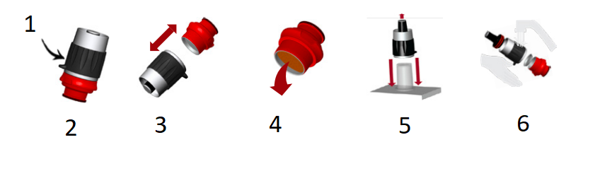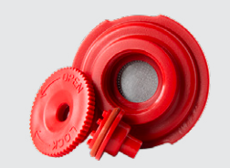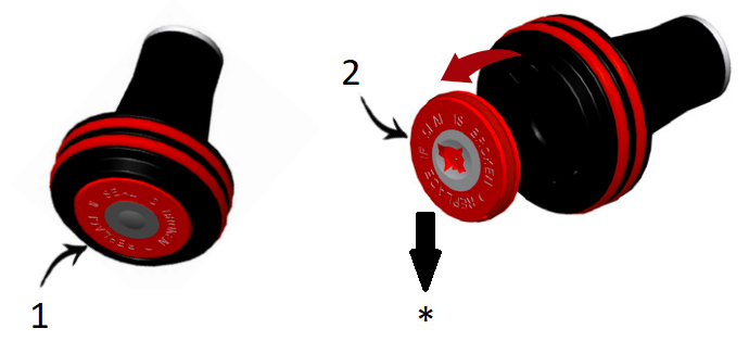 *Verwijder de kapotte klep door deze eruit te trekken aan de kleine uitsparing aan de rand van de klep. Vervang de klep door de nieuwe klep in de uitsparing aan de onderkant van de zuiger te duwen, met de folie naar buiten gericht.