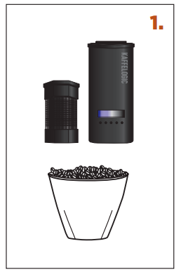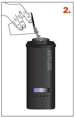 1. SCHEP – gebruik een afgestreken schep sperziebonen. [Gebruik de meegeleverde schep.] Anders meet u 120–160 ml of 90–120 g af. Niet overladen. Als je koffiebonen van Monsooned of cafeïnevrije bonen gebruikt, zijn minder dicht en het wordt aanbevolen om op gewicht te laden. |