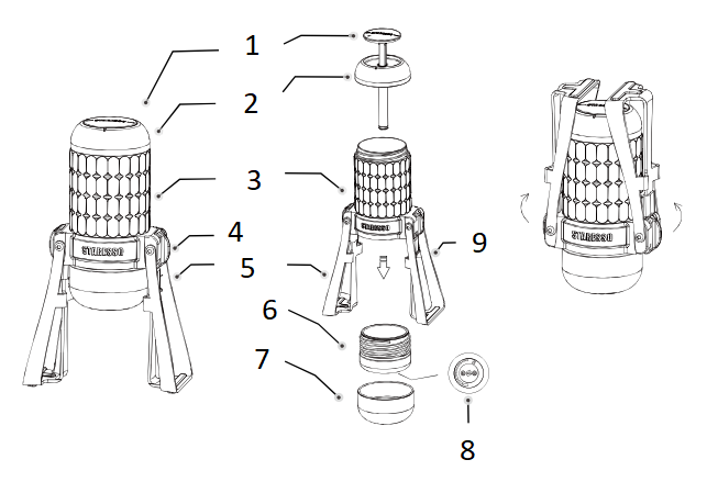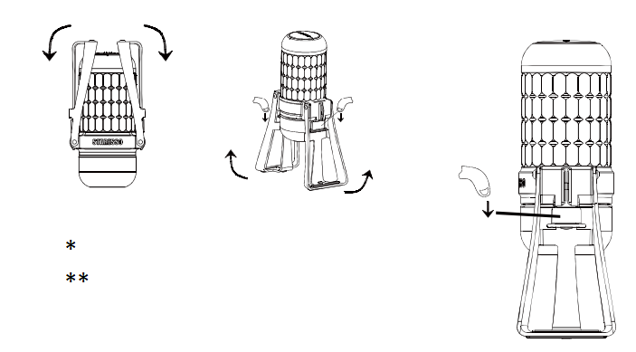 ** Opbergen: Trek de beweegbare schakelaar naar beneden om de twee beugels los te maken en klap ze vervolgens eenvoudig omhoog.