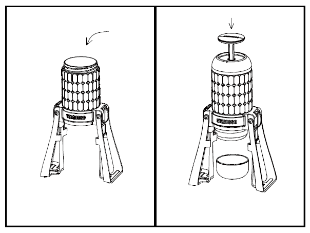 - Draai het pompdeksel los en begin met pompen. Voor het beste extractieresultaat pompt u elke twee seconden. U zult voelen dat de druk afneemt wanneer al het water op is. Stop in dat geval met pompen. Uw koffie is nu klaar... Eet smakelijk!